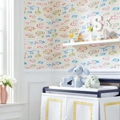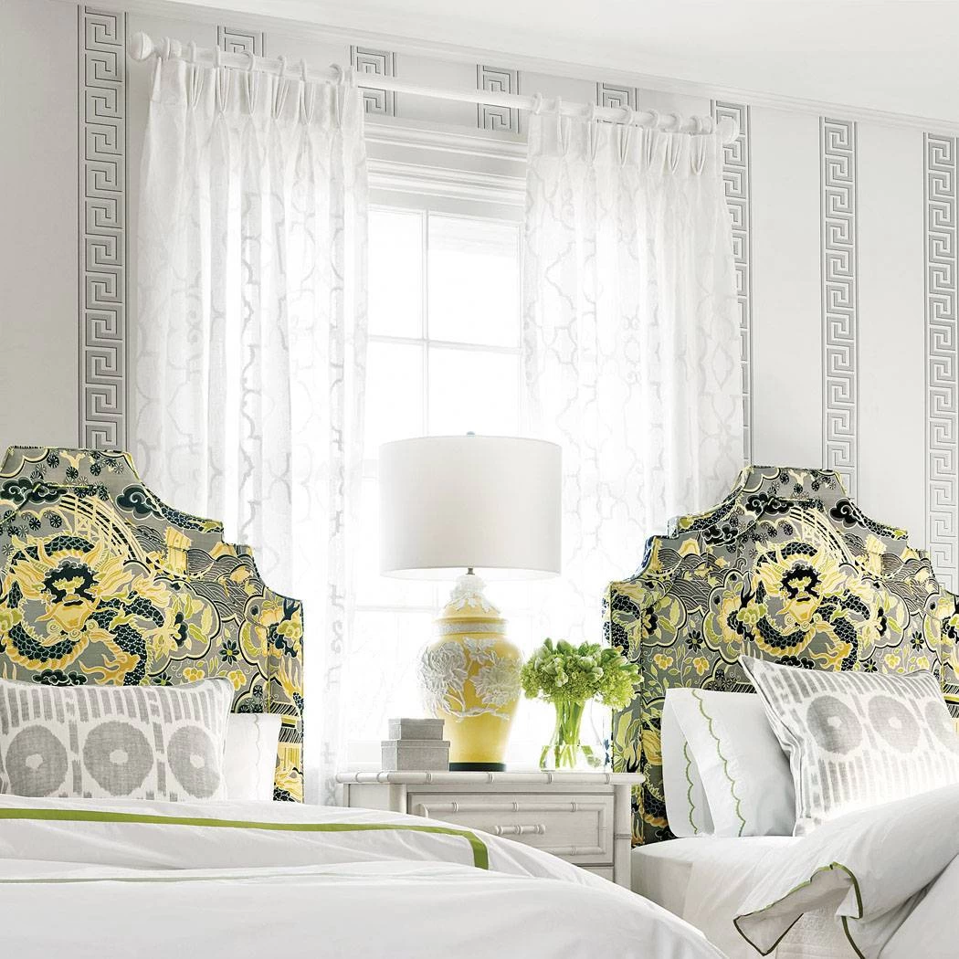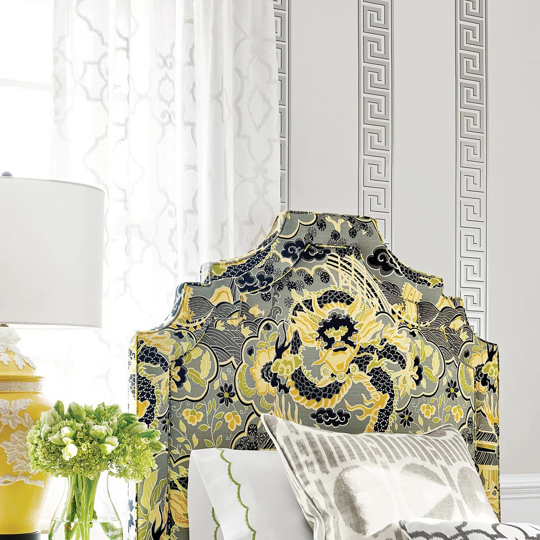 Andreas Stripe is a great coordinating wallpaper. This geometric stripe showing a Greek Key is available in colorways that coordinate throughout the Imperial Garden collection.