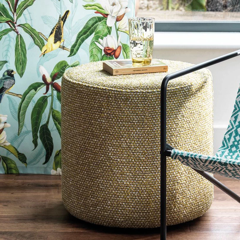 A tactile spotted weave, woven with luxurious boucl茅 yarns.