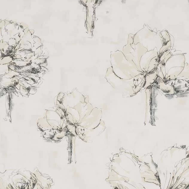 Charcoal-drawn flowers. Wallpaper hand-printed in a frame, untrimmed.