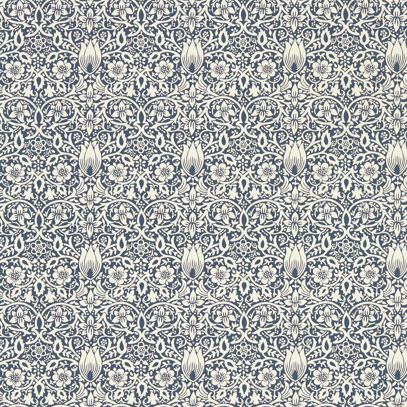Morris & Co. are thrilled to reintroduce Borage, an 1883 design by William Morris. Translated for the first time on to wallpaper, Borage is a spirited floral pattern with multiple symmetrical axes, lending the eye many pleasing resting points. Beloved by bees and other pollinators, Borage is a perfect example of William Morris drawing ideas about ornamenting interiors from the natural world.