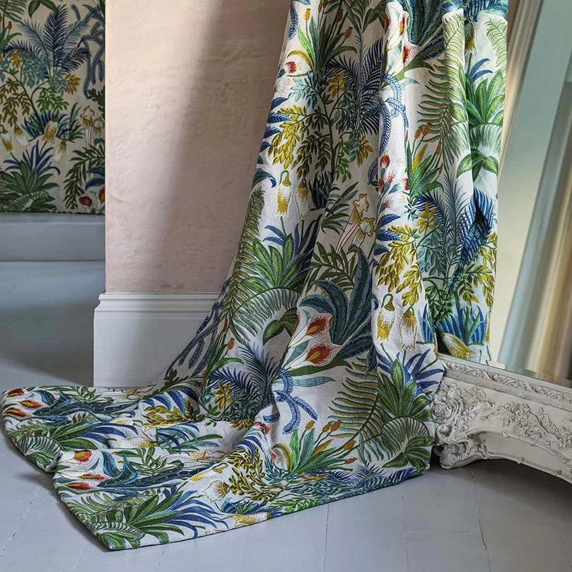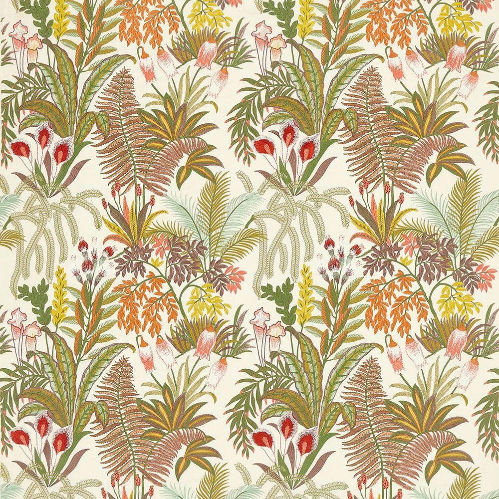 A decorative design of aquatic plants and lily flowers embroidered with a variety of stitches in matt and shiny yarns.