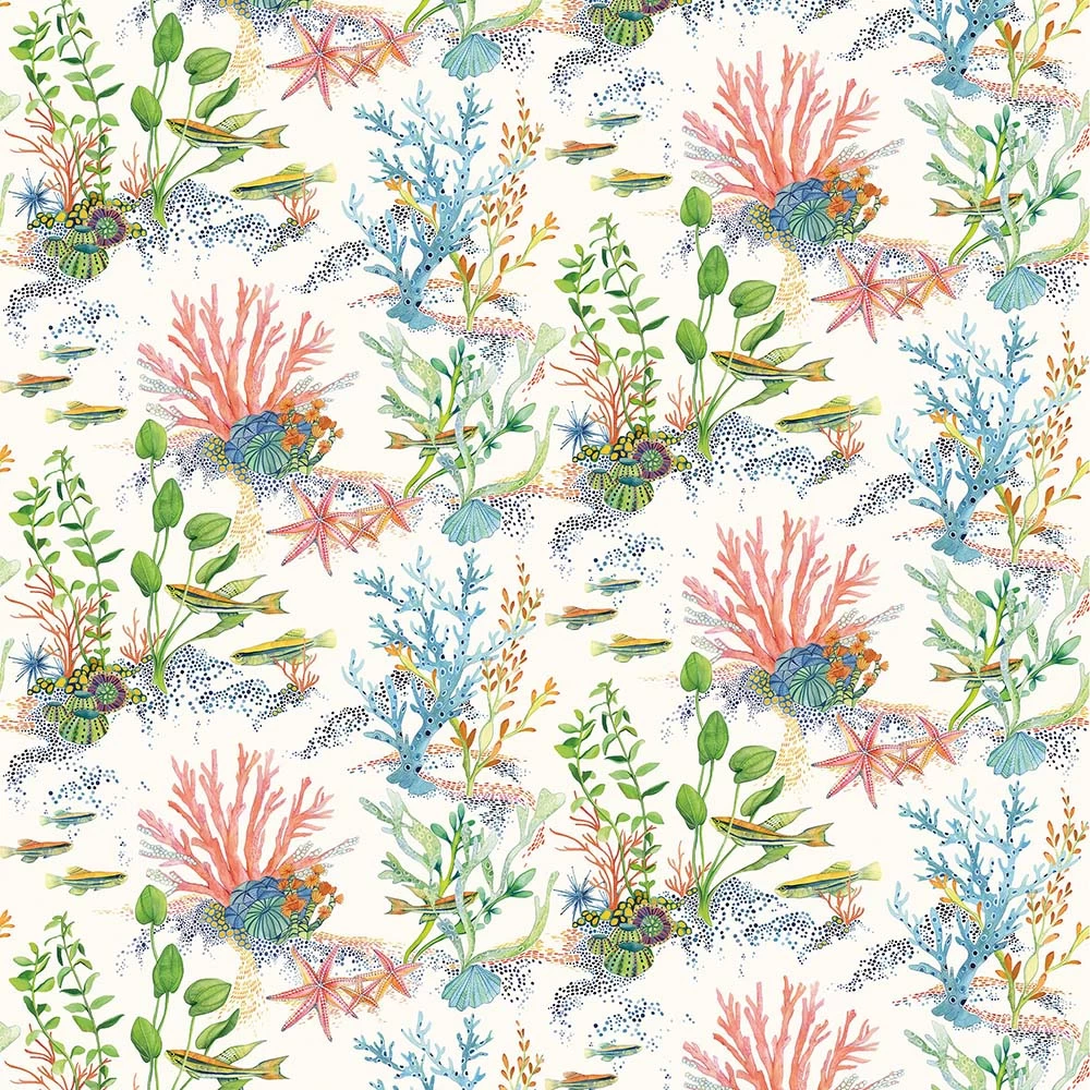 Exotic birds sit in the branches of a magnolia tree with budding flowers. This design was first introduced as a wallpaper in O&L鈥檚 EMPYREA collection.