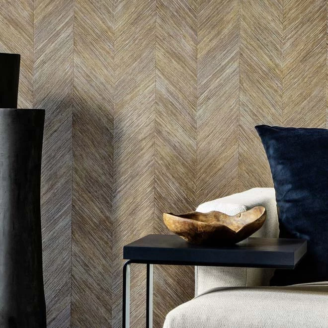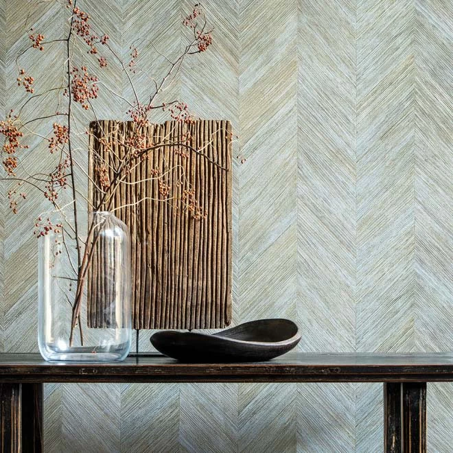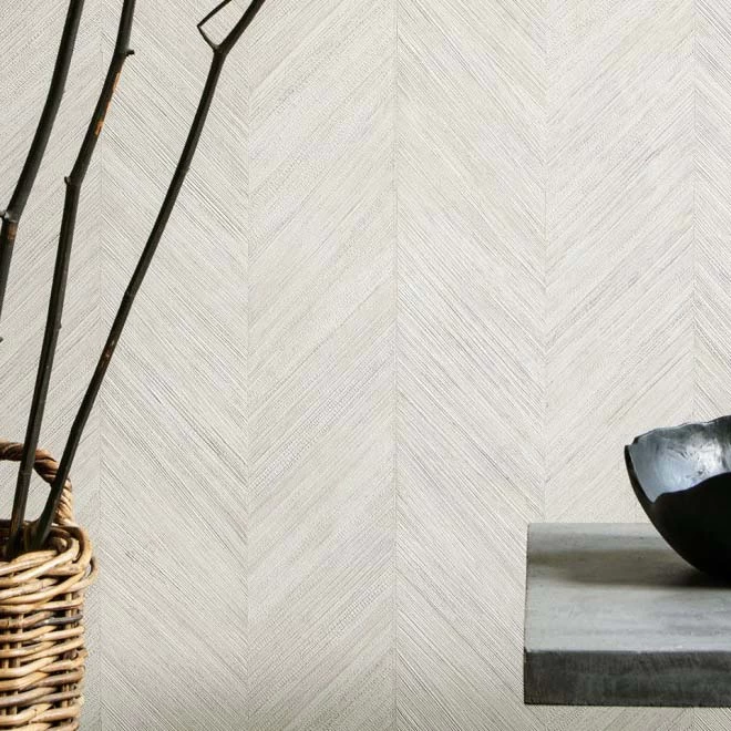 A subtle stripe pattern, inspired by the bark of banana trees. Thanks to the herringbone shape, the motif plays with light and shadow so that the design varies according to the incidence of light.