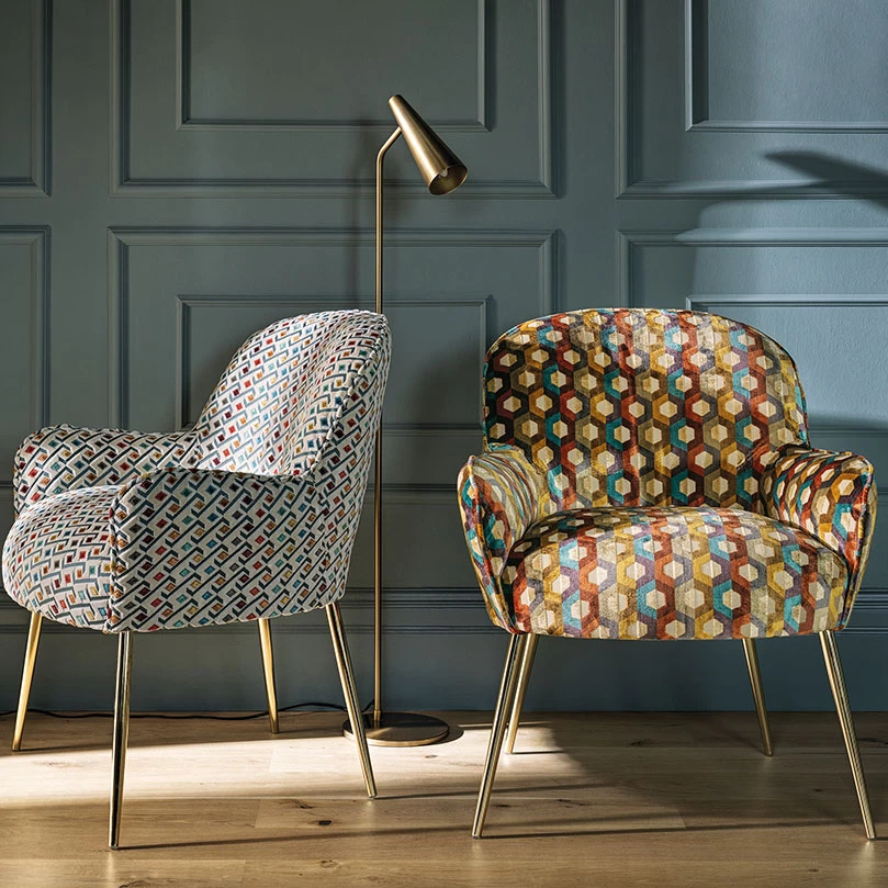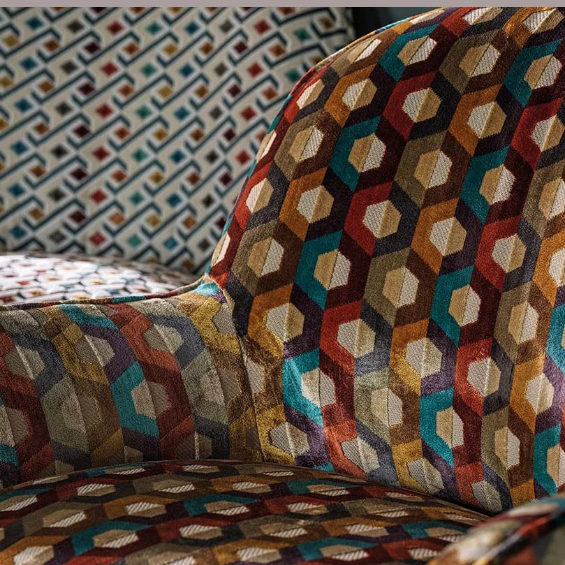 A colourful velvet honeycomb design, with a textural cotton twill ground.