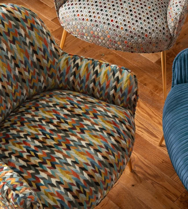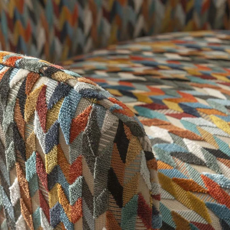 A multi-coloured cut and un-cut velvet chevron design is offered in three new colourways.