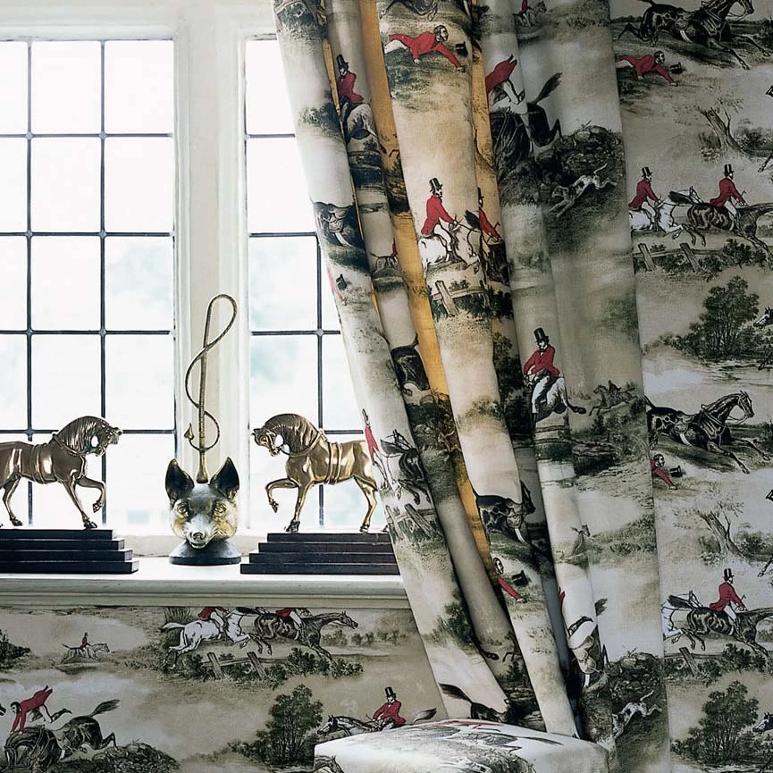 Celebrating the thrills and spills of the hunt, the original hand coloured lithographs that make up this design are believed to be by Henry Thomas Alken in mid 1800s. An ideal design for country cloakrooms, boot rooms and bars.