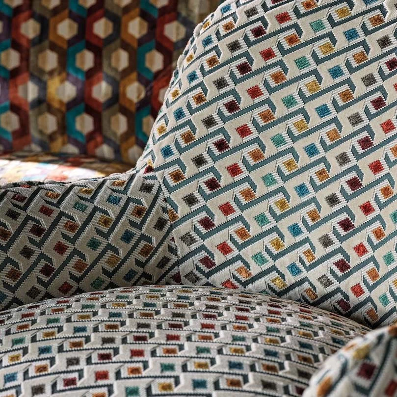 Multi-coloured diamonds in a diagonal design of cut and un-cut velvet.