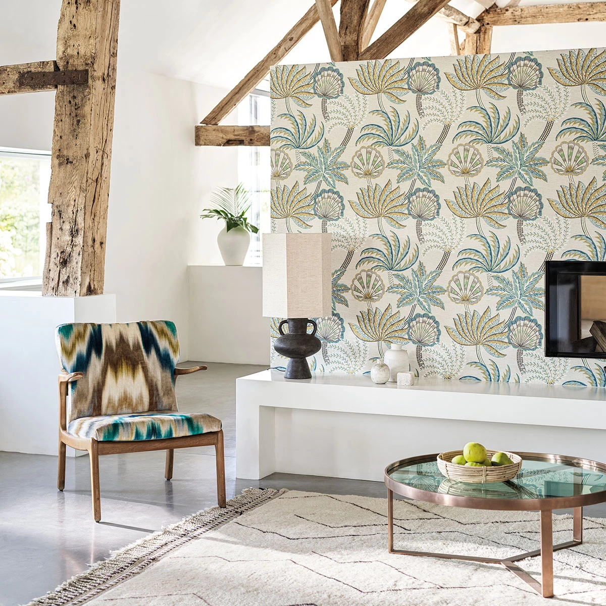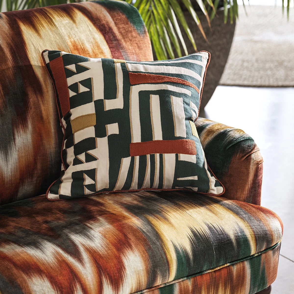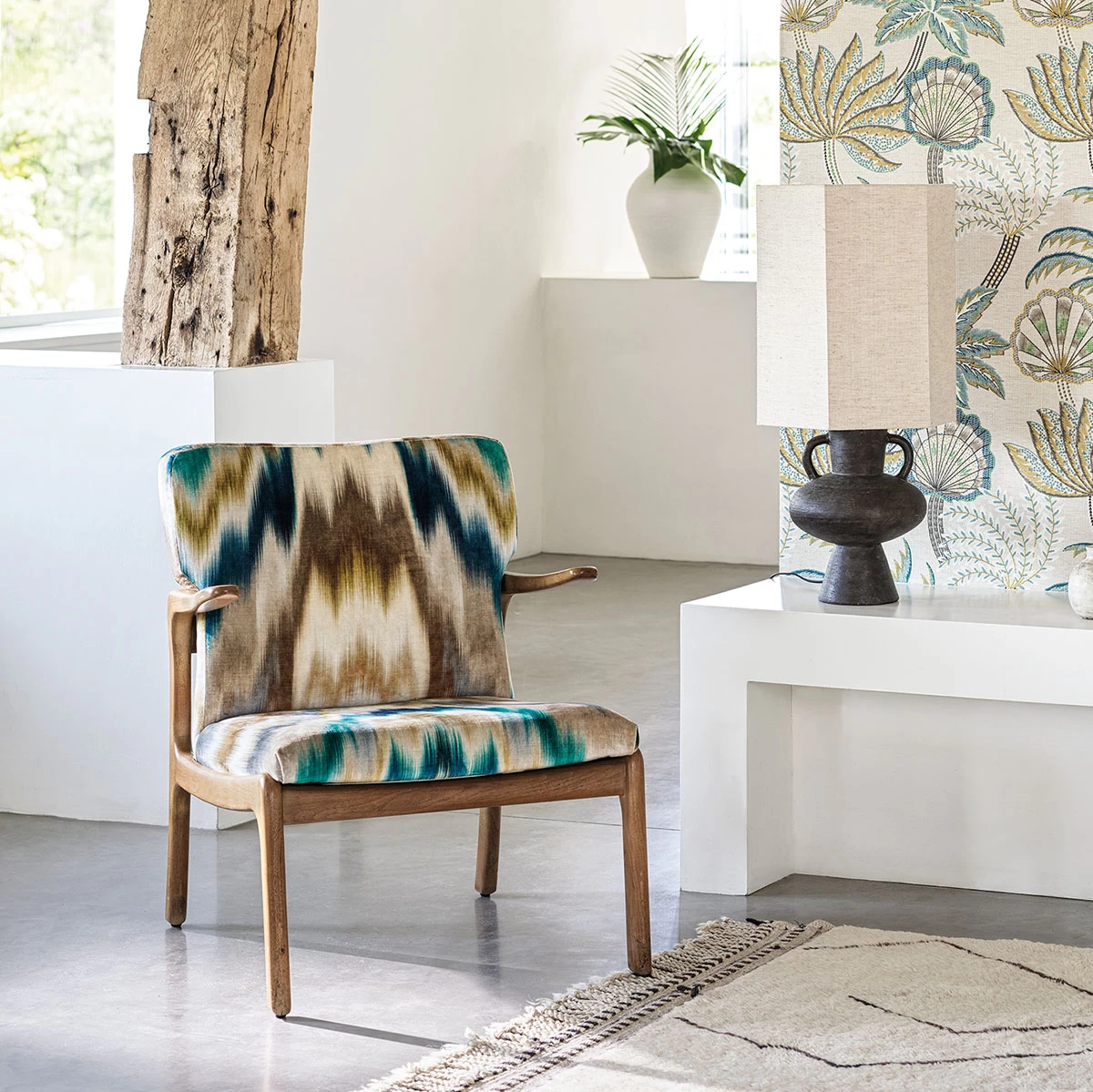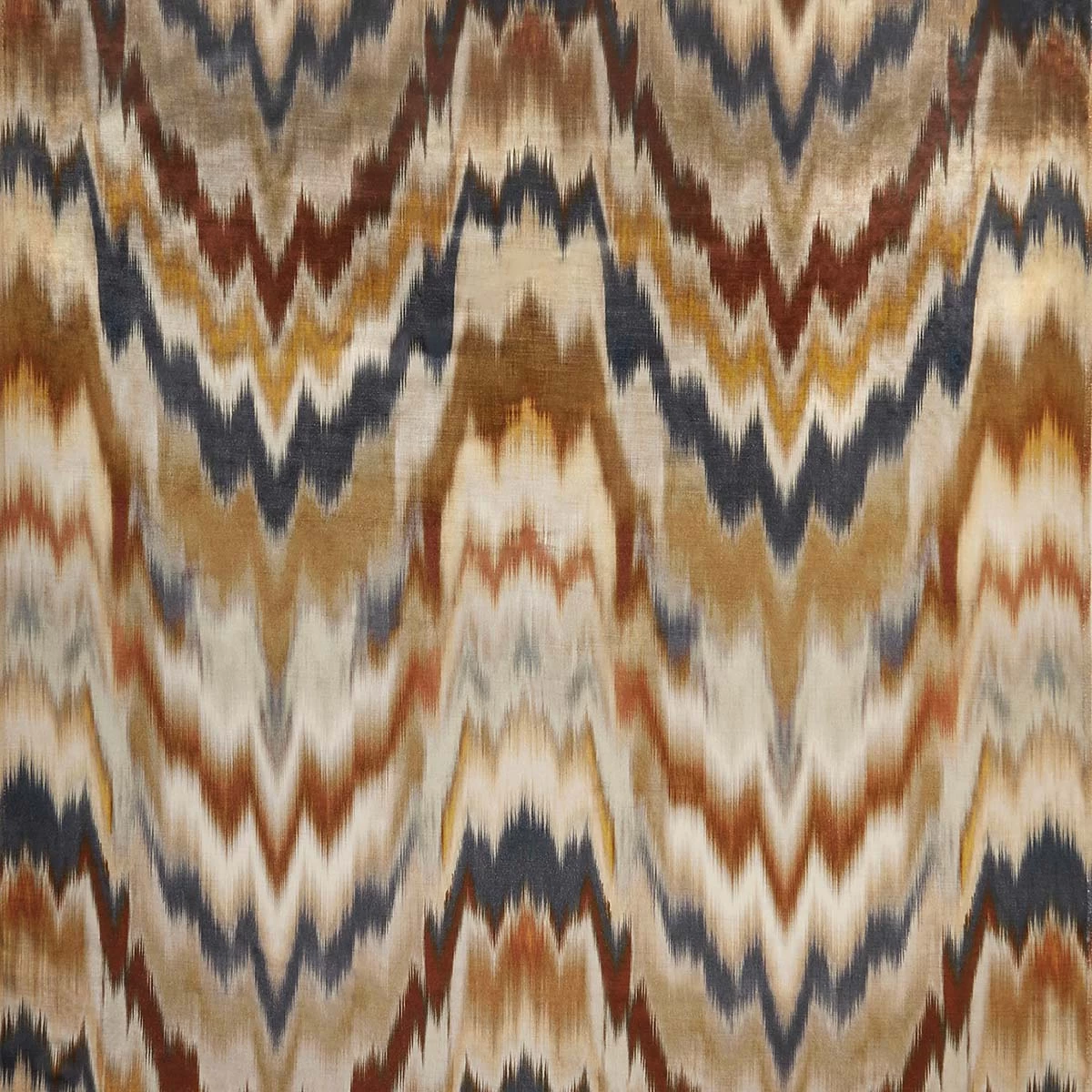 A colourful large-scale ikat design printed on a luxurious velvet.