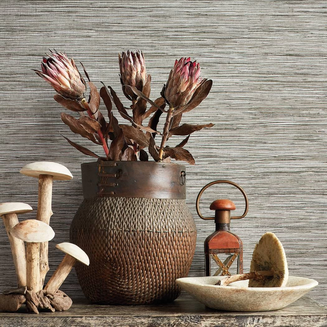 Jindo Grass聽realistically simulates grasscloth wallpaper. It is gravure printed with a mix of tones and colors on vinyl with a grasscloth emboss.