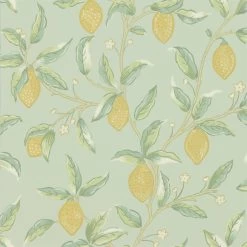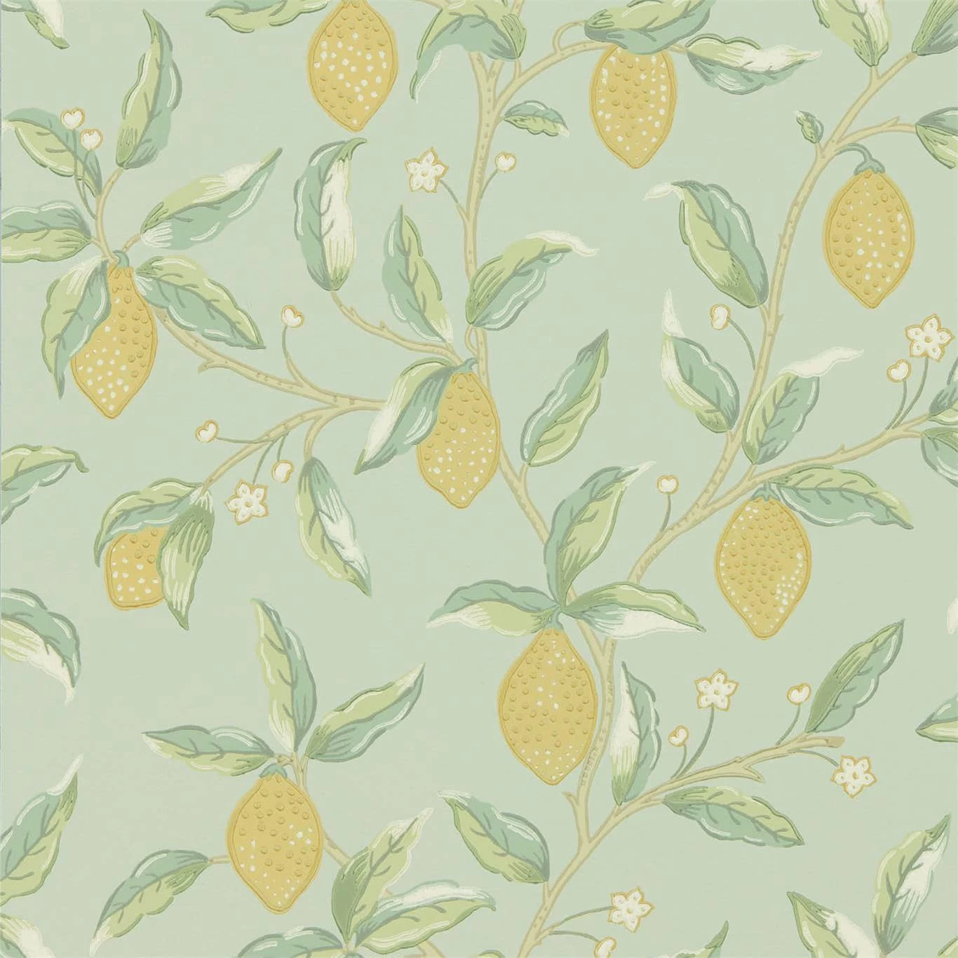 Inspired by the lemons in Fruit one of William Morriss most loved wallpapers Lemon Trees chalky white print mark adds detail to trailing branches and delicate blossom creating this fresh and calming design. Available in three colourways: Bayleaf Sage and Wedgewood.