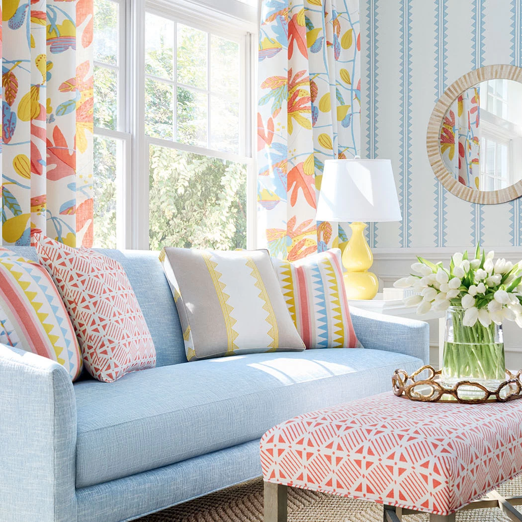 Energized with color and craftsmanship, this woven cotton stripe has blocks carefully hand-placed to form the triangle shapes.