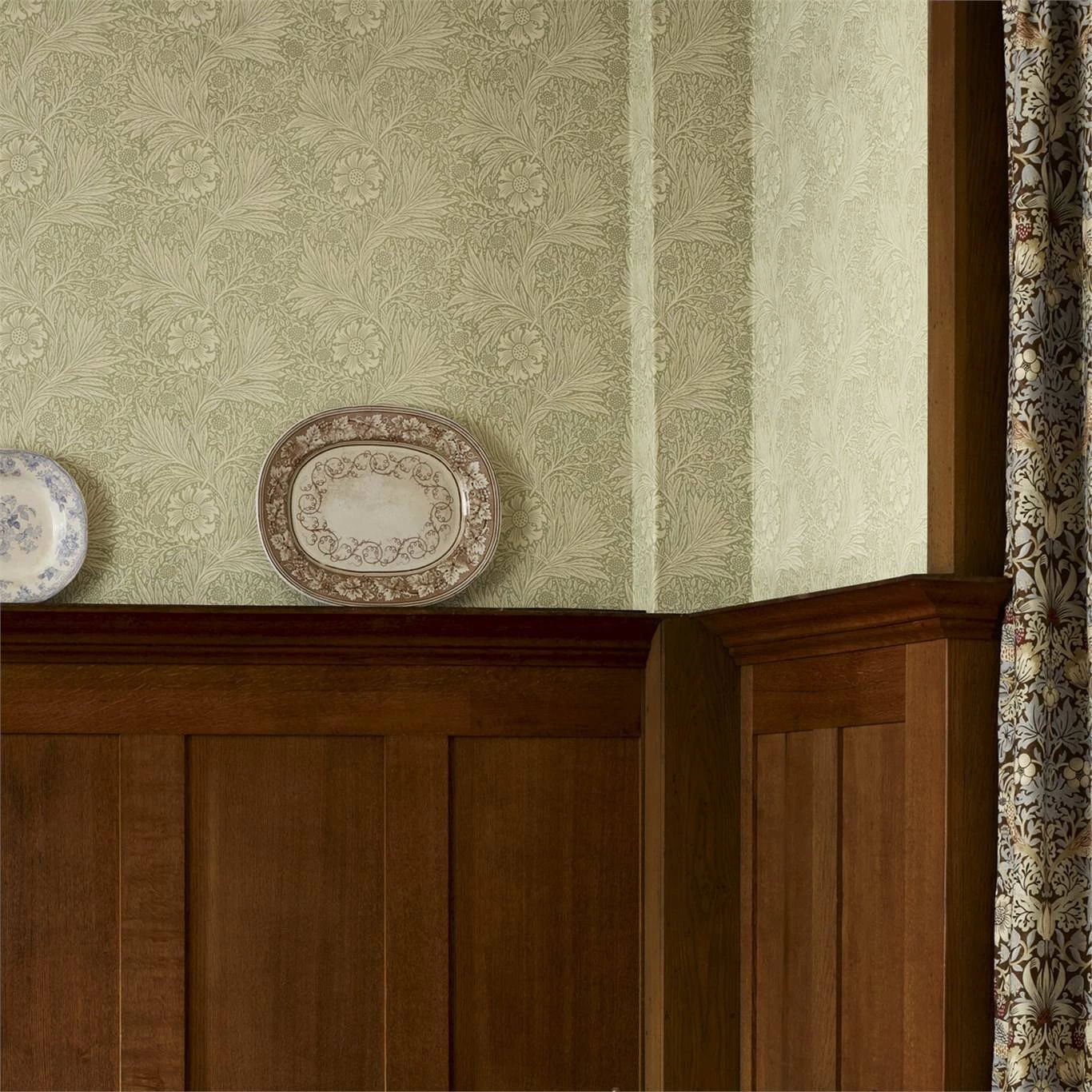 With a single colour Morris created stunning patterns which worked equally well when applied to wallpaper and fabric. Marigold (1875) is one such design with versatility and an enduring appeal.