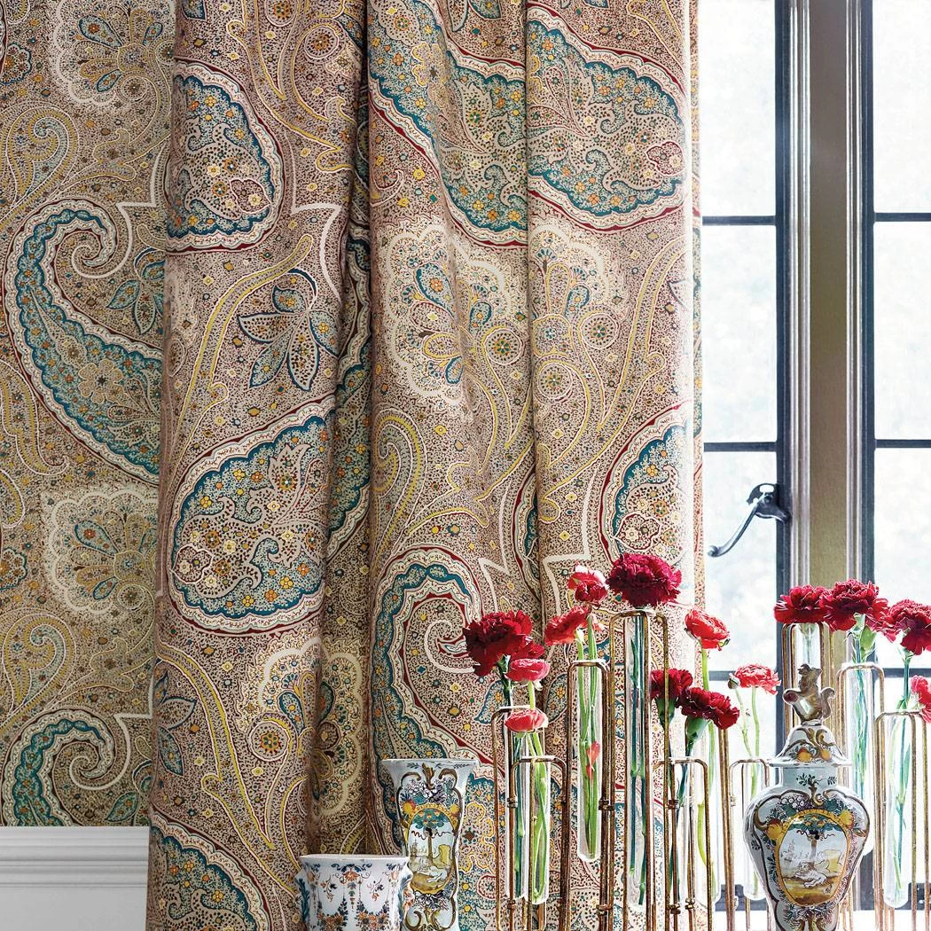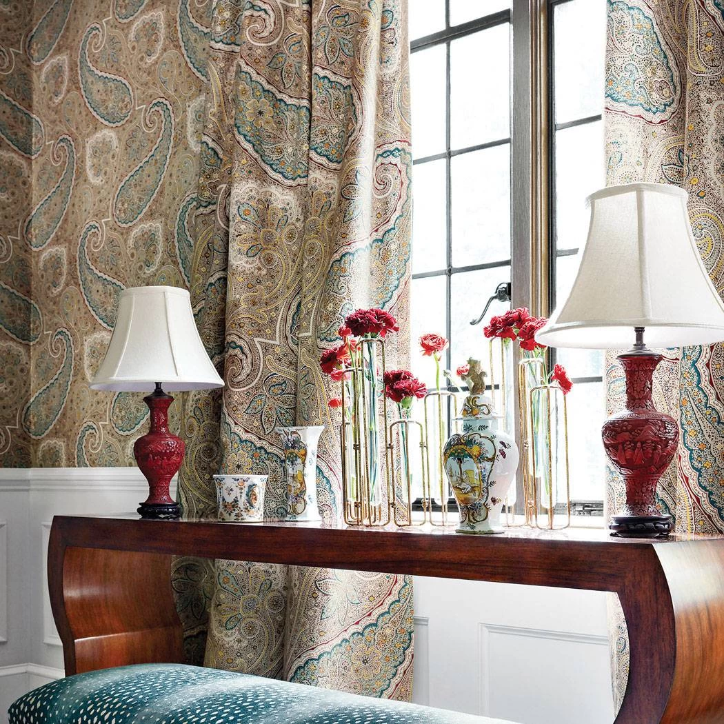 Taken from a small 19th century antique fabric swatch with a 6″ repeat. The pattern was enlarged and expanded for modern appeal. The rotary screen print enhances the nice, clean details of the paisley shape.
