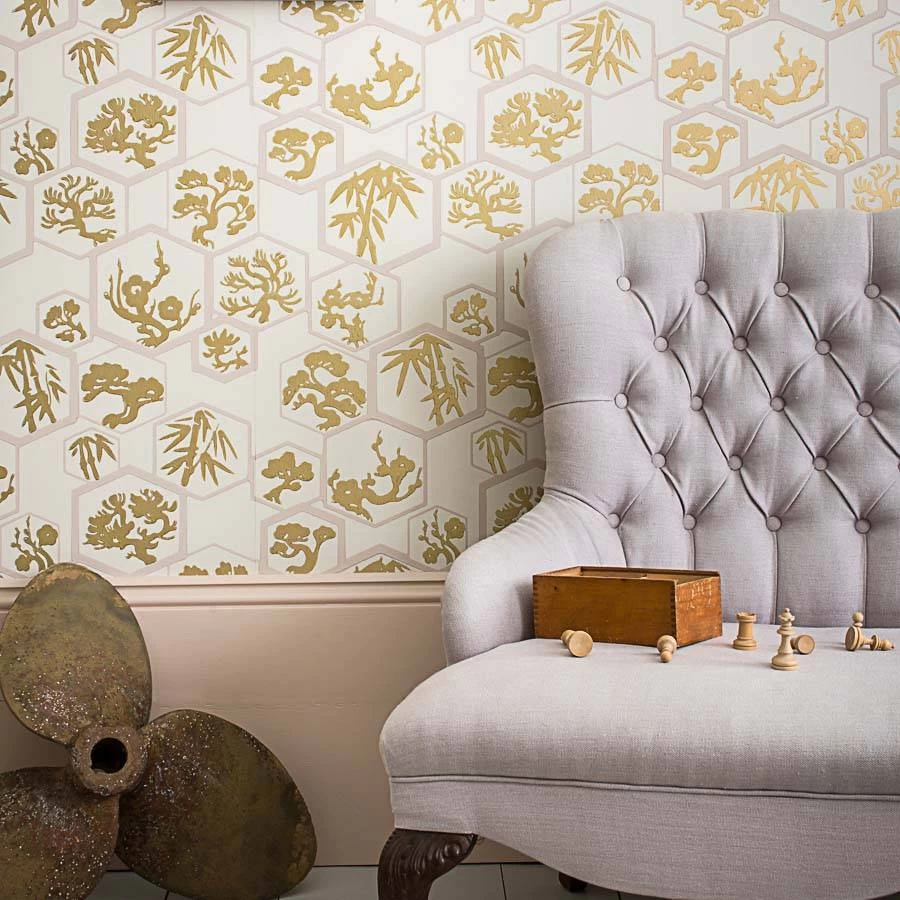 Shouchikubai is the Japanese word for the Three Friends of Winter: plum, pine and bamboo, whose ability to withstand the colder months makes them symbols of strength, beauty and longevity in the Far East. These botanical motifs, contained in their hexagonal frames, bring a graceful pattern to all sorts of spaces.