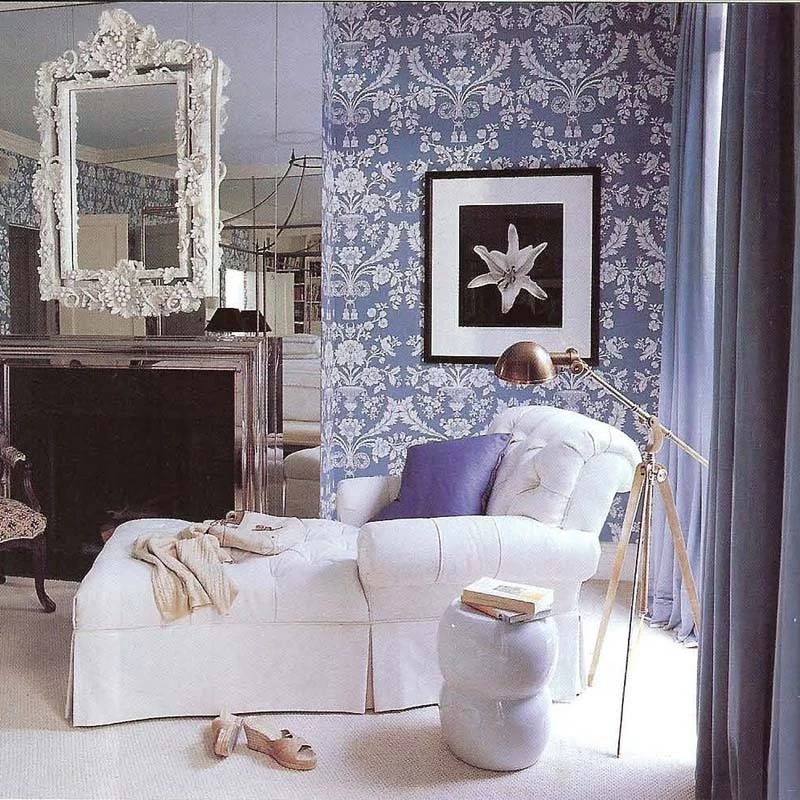 This opulent damask wallpaper is named after the place where its pattern was first produced, back in 1793. Today, its design of abundant blooms, preening birds and lush foliage adds a feeling of luxury to homes of all kinds.