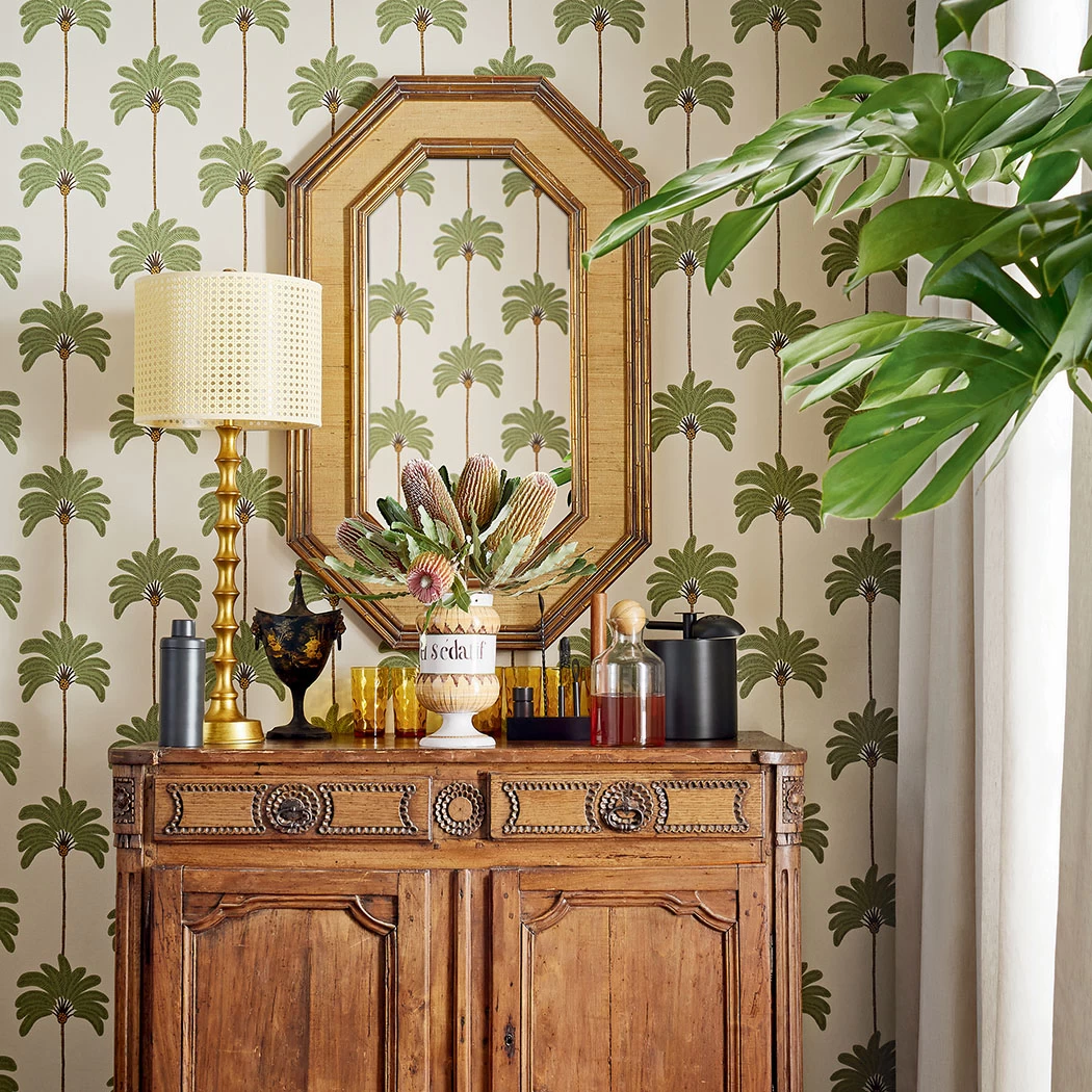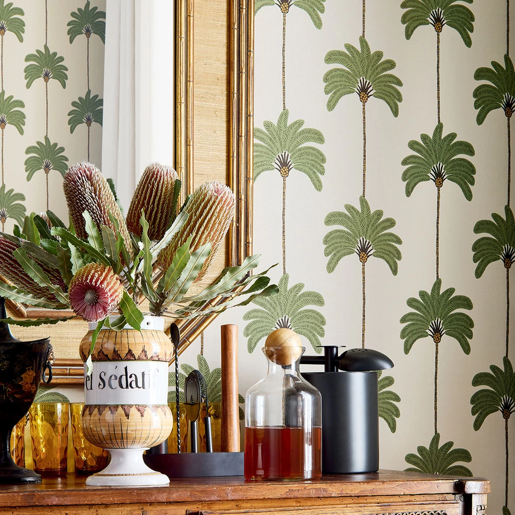 A whimsical creation of palm trees that form a stripe, Sunset Boulevard brings a vintage look backed by the long-lasting durability of performance vinyl.