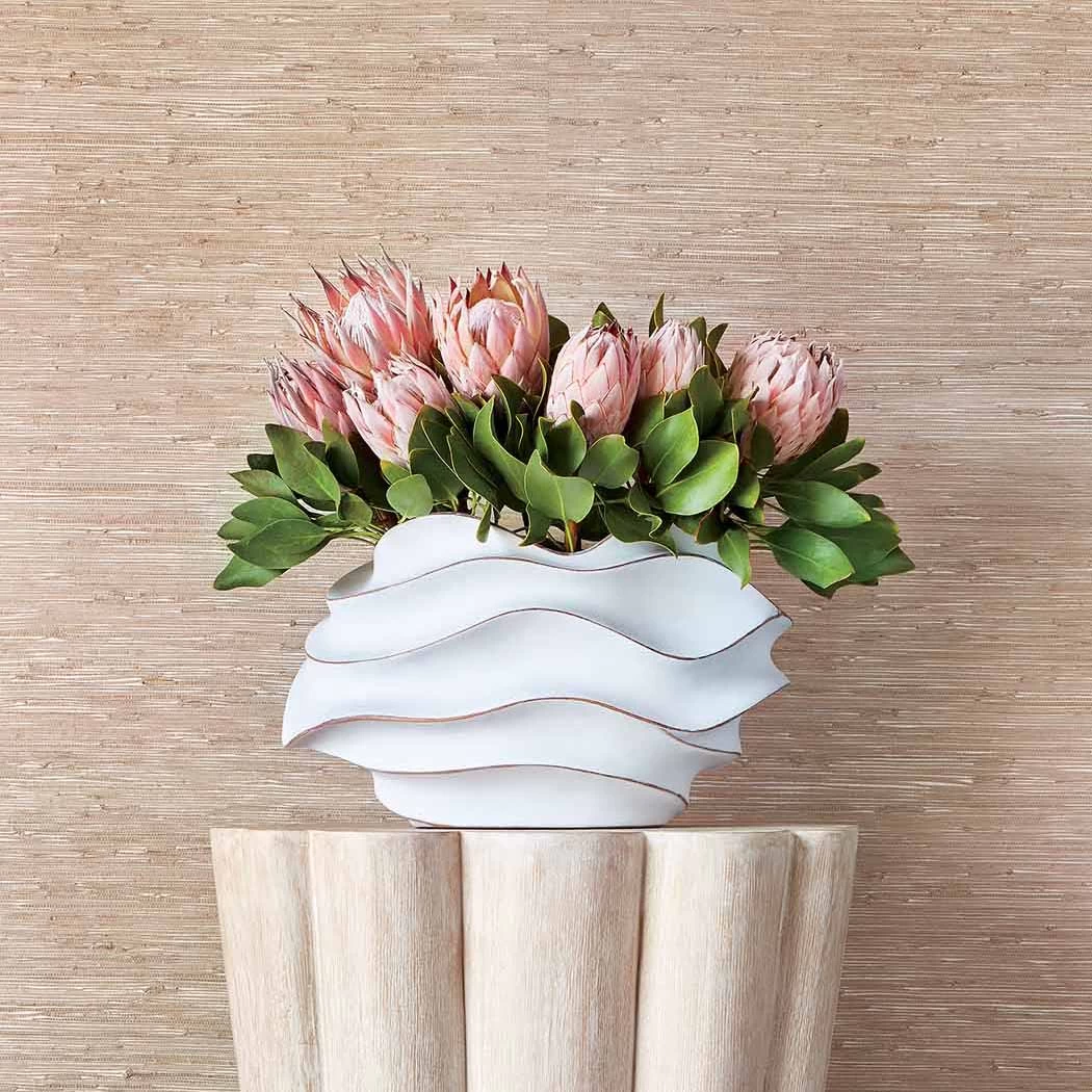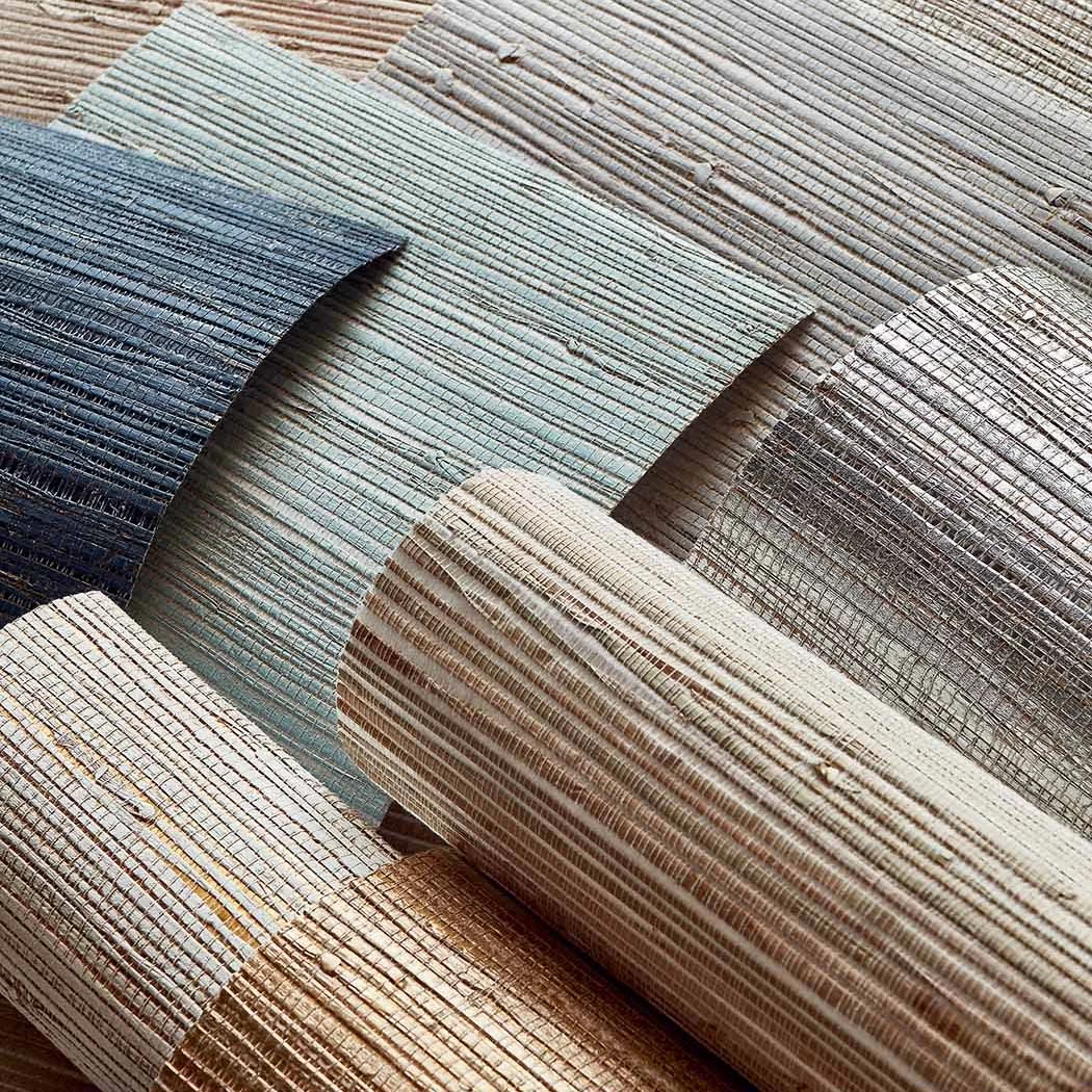 An all-over knotty and chunky grasscloth, woven with grasses cultivated from the mountains. Multi tones of color are printed on top.